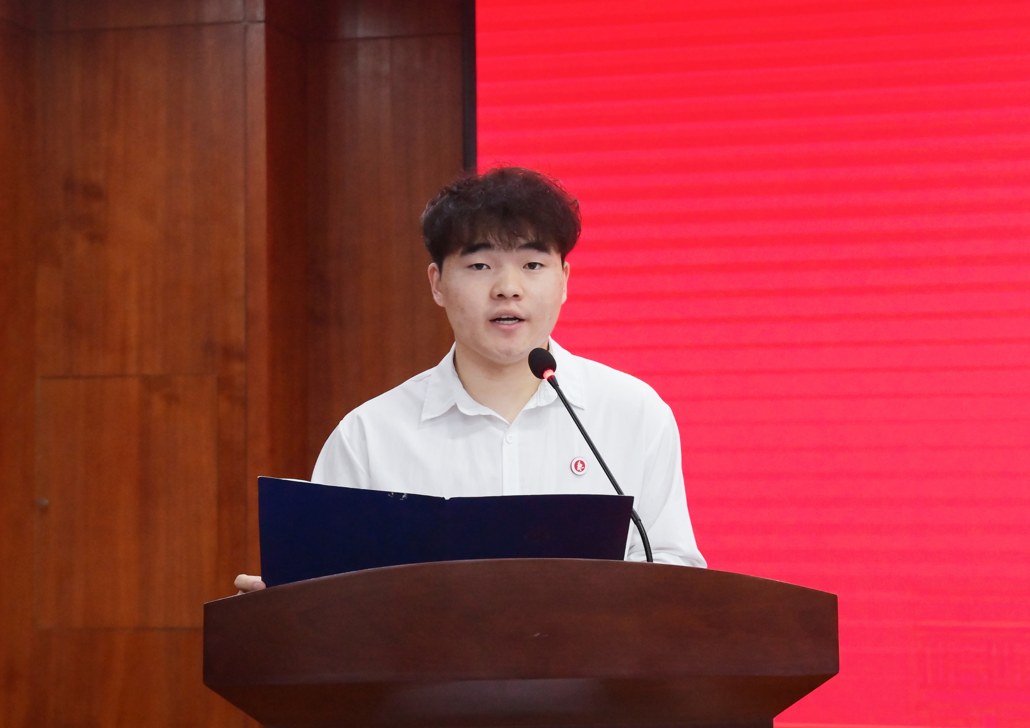 在校生代表2021级设计系陈正康同学发言,他代表极速赛车