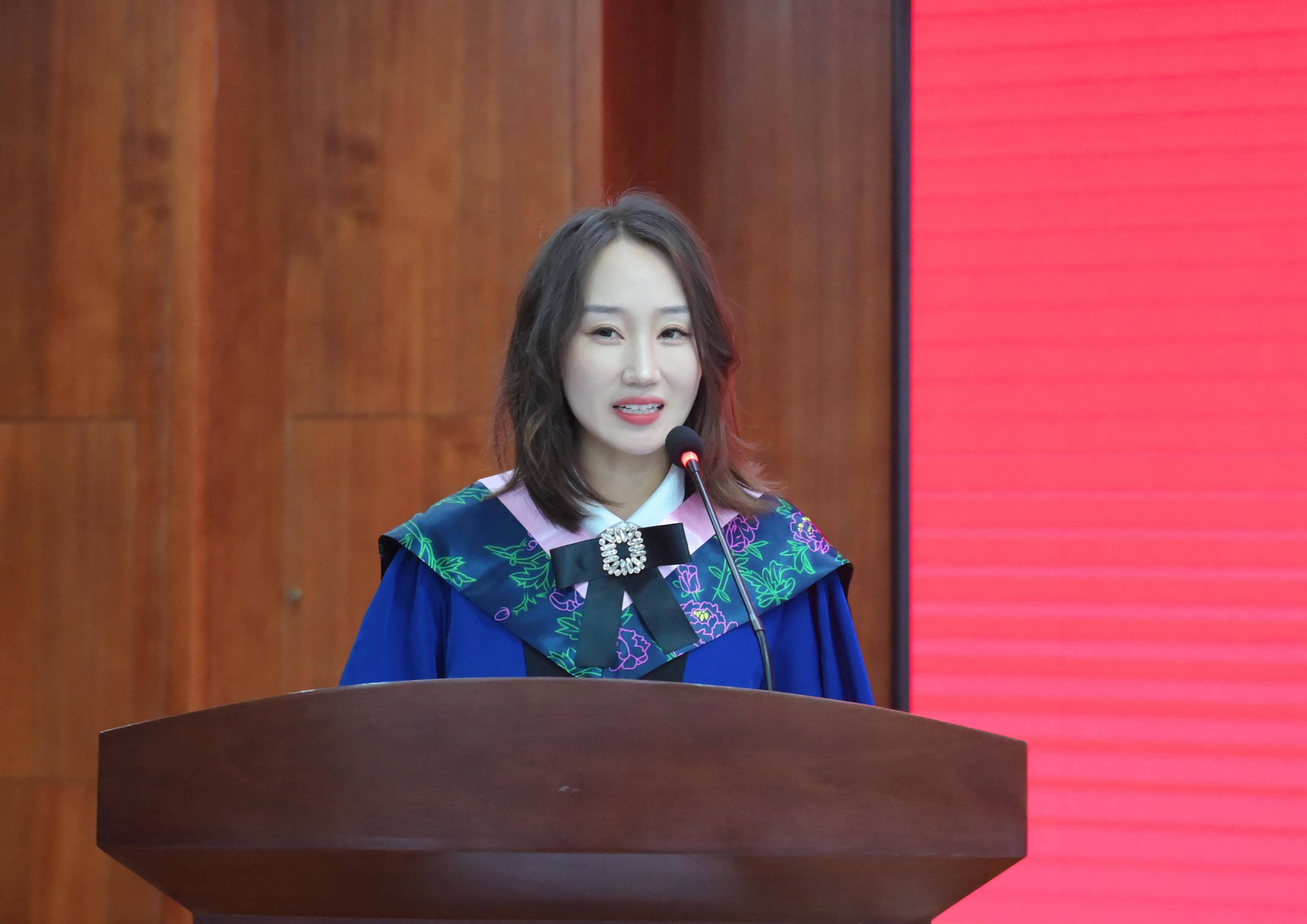 全体毕业生向工作在一线的老师们致以最崇高的敬意。她表示,在专业领域的研究学习中,要始终保持对知识的敬畏,不断探索,在艺术的海洋中乘风破浪;要心怀家国,服务人民,用所学回馈国家和社会,承担起时代赋予的使命,在未来的征程中不断超越自我,书写更加灿烂的人生篇章。