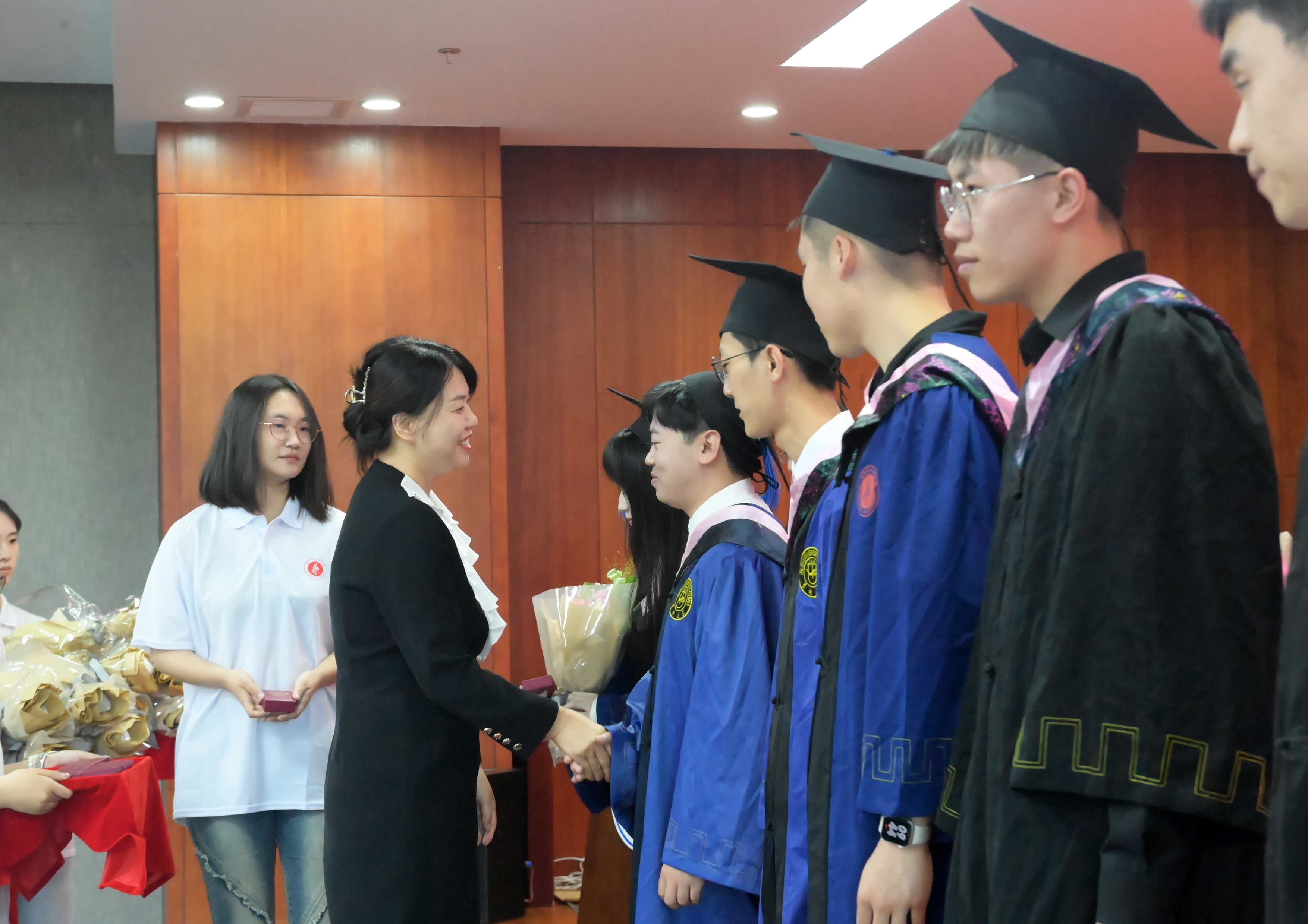 学位授予仪式上。主礼教授郭春方院长为毕业生颁发学位证书;副院长王月颖教授、郑海标教授、吕净植教授为毕业生拨动流苏。极速赛车