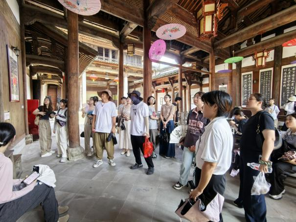 宏村及其周边的名胜古迹,如南屏古树、守拙园、九龙瀑、秀里景区、唐模、卢村、 西递乃至远至景德镇,无一不给师生留下深刻印象。其中,宏村的传统徽派建筑尤为引 人注目。承志堂、敬修堂的精细木雕,东贤堂、三立堂的大气磅礴,无不展现出徽州建 筑的独特魅力和深厚的历史积淀,成为师生们笔下最生动的画面。
