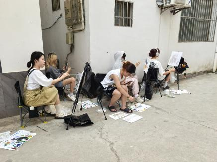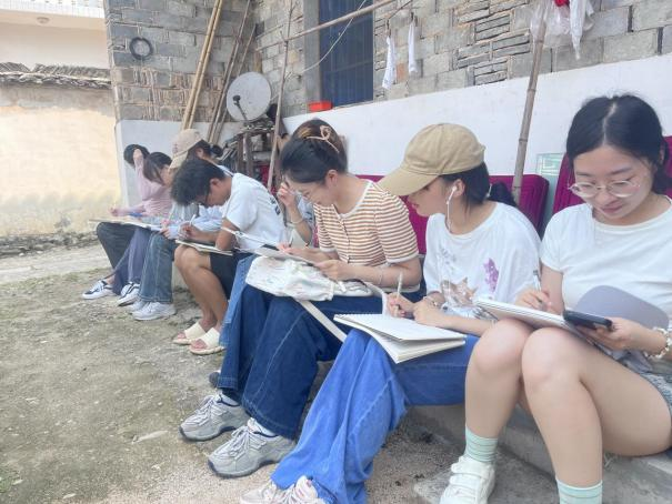 2024 年 8 月 28 日至 9 月 11 日,美术系 2021 级绘画专业师生 60 余人,来到了安徽 省黄山市黟县的古村落宏村及周边,进行为期两周的考察与写生教学。本次的考察与写 生教学,旨在深化艺术教育,强化与多学科的交叉融合,探索“教—研—践 ”三维一体 的教学模式。通过实地考察写生,学生们得以近距离接触历史文化遗迹,感悟传统与当 地艺术深入接触,拓宽视野的同时,提升专业技能。这一过程不仅加深了对专业的理解, 更为未来的创作打下了坚实的基础。