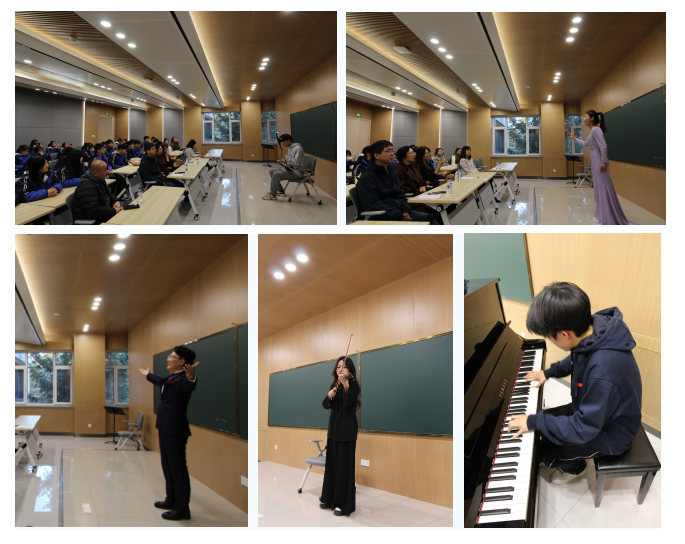 音乐学科优秀研究生、本科生代表及梨树实验中学音乐实验班的优秀学生代表先后做了专业展示,表演各具特色,与会师生对其精彩表演报以热烈掌声。