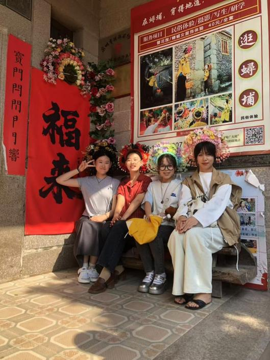 考察课程第一站是泉州,同学们首先来到开元寺,这是国产游戏《黑神话:悟空》的取景地,在此同学们深刻体会了如何将我国文化遗产与现代化艺术创作完美结合,并在寺内参观了弘一法纪念馆。其后来到蟳埔村,了解妈祖文化对于闽南地区人民的重要性,观赏为妈祖庆生的舞龙表演。老师和同学们都体验了非物质文化遗产“簪花”的魅力,详细学习簪花的制作方式,深刻体会民间手艺人的工匠精神。最后来到“半城半海”的崇武古城,在现今保存最完整的明代石城上了解华夏儿女抗击倭寇的英勇事迹,点燃了同学们的爱国主义情怀。