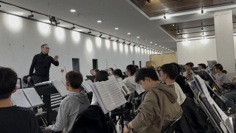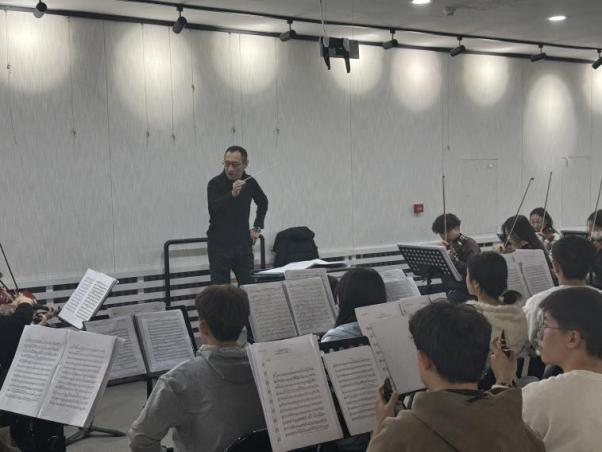 的师生带来了一场无与伦比的音乐之旅。在排练贝多芬《第九交响曲》时,袁丁老师展现了他对于这部作品的深刻理解和精准把控。在排练过程中,他特别强调作品中蕴含的音乐演奏技巧与深刻情感,鼓励同学们用心去感受和表达音乐。