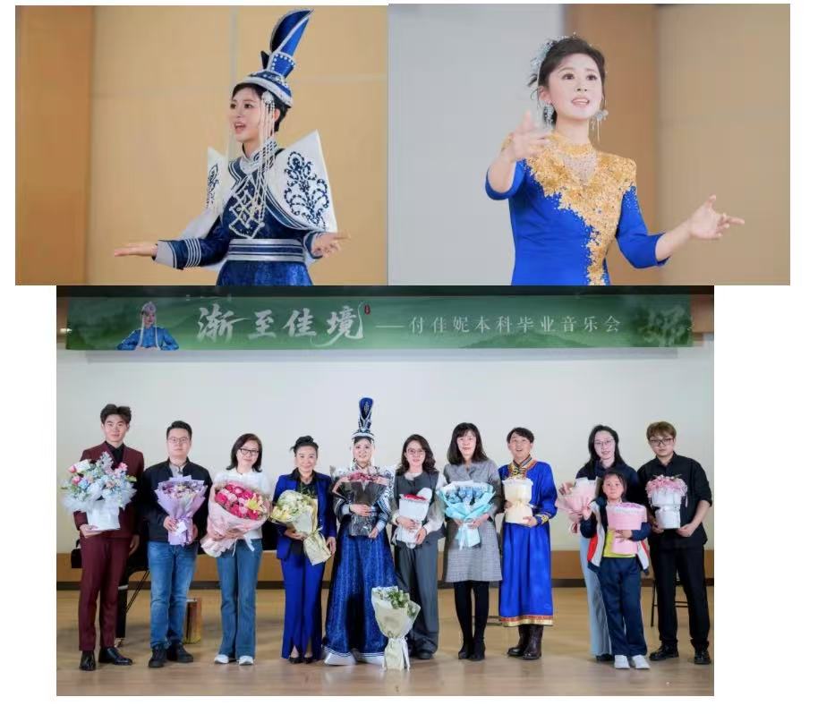 攻读硕士学位。音乐会曲目风格多元:上半场涵盖古诗词艺术歌曲《江畔独步寻花》、山东民歌《包楞调》及歌剧选段《胜利时再闻花儿香》;下半场则聚焦蒙古族经典,付佳妮与赵子龙的合唱《幸福的牧马人》《春天》将气氛推向高潮。吉林省知名打击乐演奏员杨爽、长春马头琴协会会长包海龙(市级马头琴传承人)及其团队的倾情助阵,为蒙古族民歌注入了灵魂。
