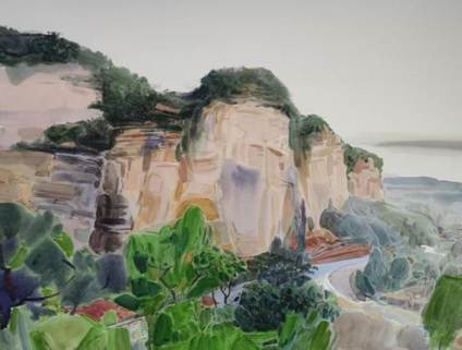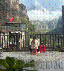 写生期间,师生先后前往猪叫石、画家村、井底村、太行大峡谷、红旗渠等地进行实地创作。太行大峡谷汇聚了峰峦叠嶂、幽深峡谷与丰富植被,形成了强烈的视觉张力;而散布于山间的传统石屋、古道以及红旗渠、“扁担精神”纪念展馆等红色地标,则为人文写生与思政融合教学提供了深层素材。