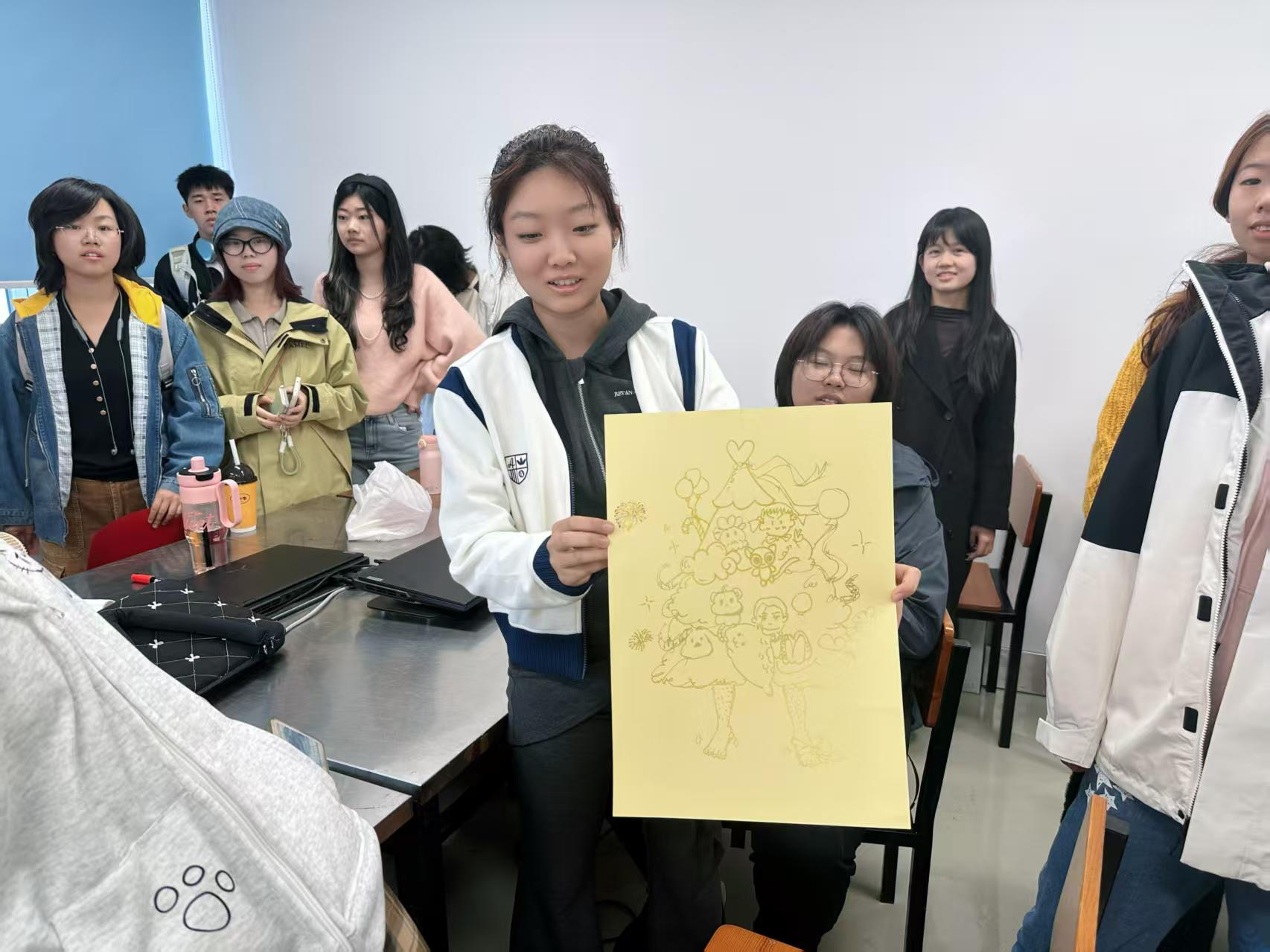 活动最后,“团体树绘制”环节为本次心理辅导画上了温暖句号。2025级新生们以笔为媒、以彩为语,将活动中收获的欢笑、对集体的认同与对大学生活的憧憬,一一定格在画纸上。每一幅作品都是“相亲相爱一家人”的生动诠释。绘制完成后,各小组手持团体书围站在一起,在镜头前留下青春洋溢的合影,快门按下的瞬间,不仅定格了初遇的美好,更将这份跨越陌生、凝聚信任的集体情谊,化作了大学生涯中珍贵的开篇记忆。
