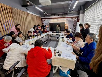 组织志愿者走进吉大社区,开展社区文化志愿服务活动。此次活动融合水墨绘画与声乐表演,将美育课堂搬进社区,推动传统文化走近群众。