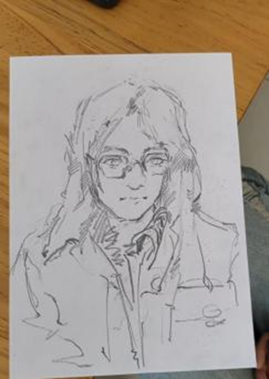 活动期间,现场秩序井然, 同学们有序排队等候,部分同学也尝试亲自绘制肖像 。专业画师耐心倾听每位同学的喜好, 结合其个人特点, 灵活运用写实 、Q版等多种风格进行创作。画师与同学们轻松交流,精准捕捉眉眼神态,使每幅作品贴合本人气质。