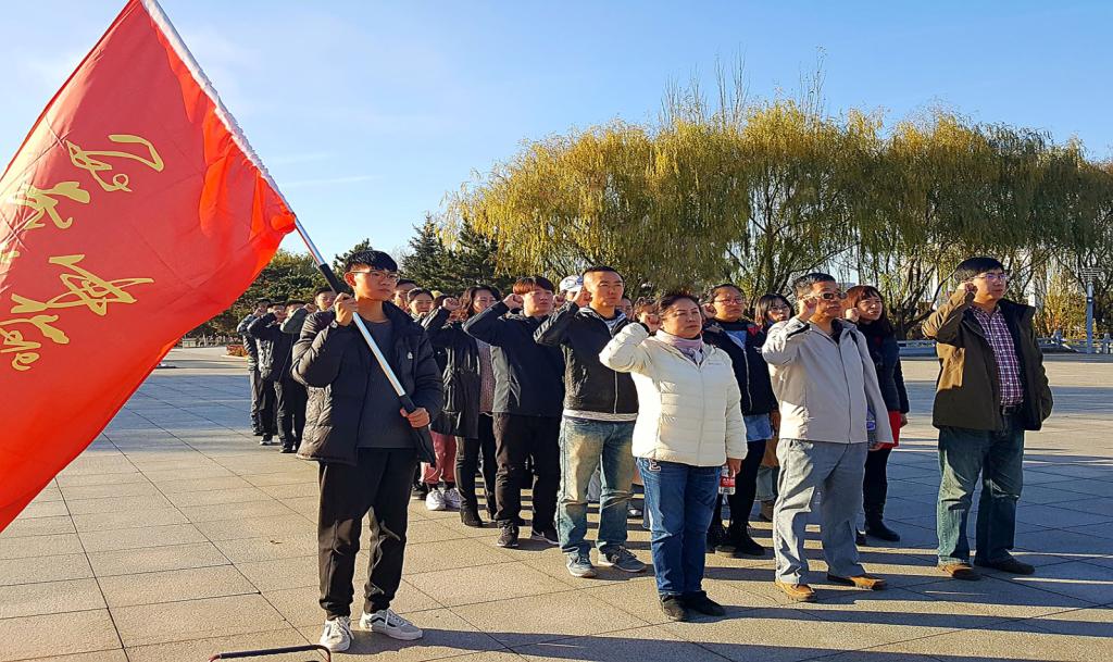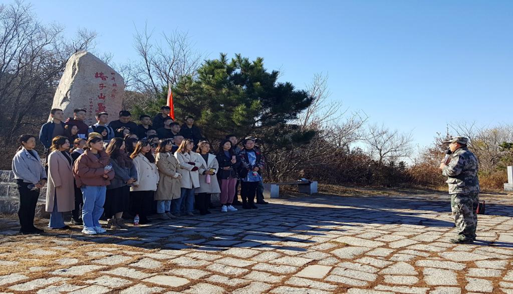 上午九时到达教学场地后,全体师生接受了列队动作、军容整理的基础训练,并于报告厅内举行了隆重的启动仪式暨队旗授予仪式。接下来全体师生奔赴塔子山红色党性教育基地,“重走英雄路”。大家踏着整齐的步伐,喊着嘹亮的口号,追寻着老一辈的奋斗足迹,感受着革命先烈的战斗历程,历时50分钟成功登顶,在遗址纪念碑前大家聆听了四平党校的老师讲解“四平保卫战”的英雄悲壮事迹,感悟先烈不朽精神,共同经受了红色洗礼。