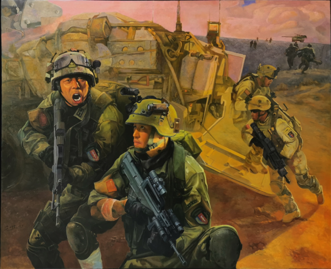 此次展览以习近平新时代中国特色社会主义思想为指导,深入贯彻强军思想和习主席关于文艺工作的重要概述,是新时代美术创作的一次集中检阅,展览面向全国全军征集优秀美术作品,也是五年一届的全国性美术大展,将于8月1日-11日在中国美术馆进行展出。按照中国美术家协会全国美展标准和要求,聘请军地专家组成评审委员会,组织初评、复评,初评入围作品共计758件,最终复评入选作品472件。其中油画作品共144件,我省共有三位艺术家入选,极速赛车